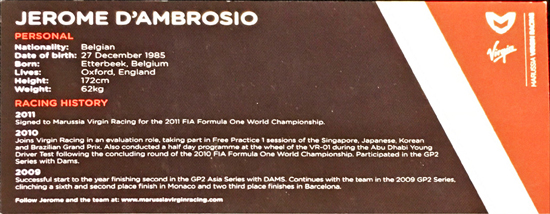 J.ダンブロシオ 直筆サイン入 マルシアF1 ドライバーズカード(カードのみ)